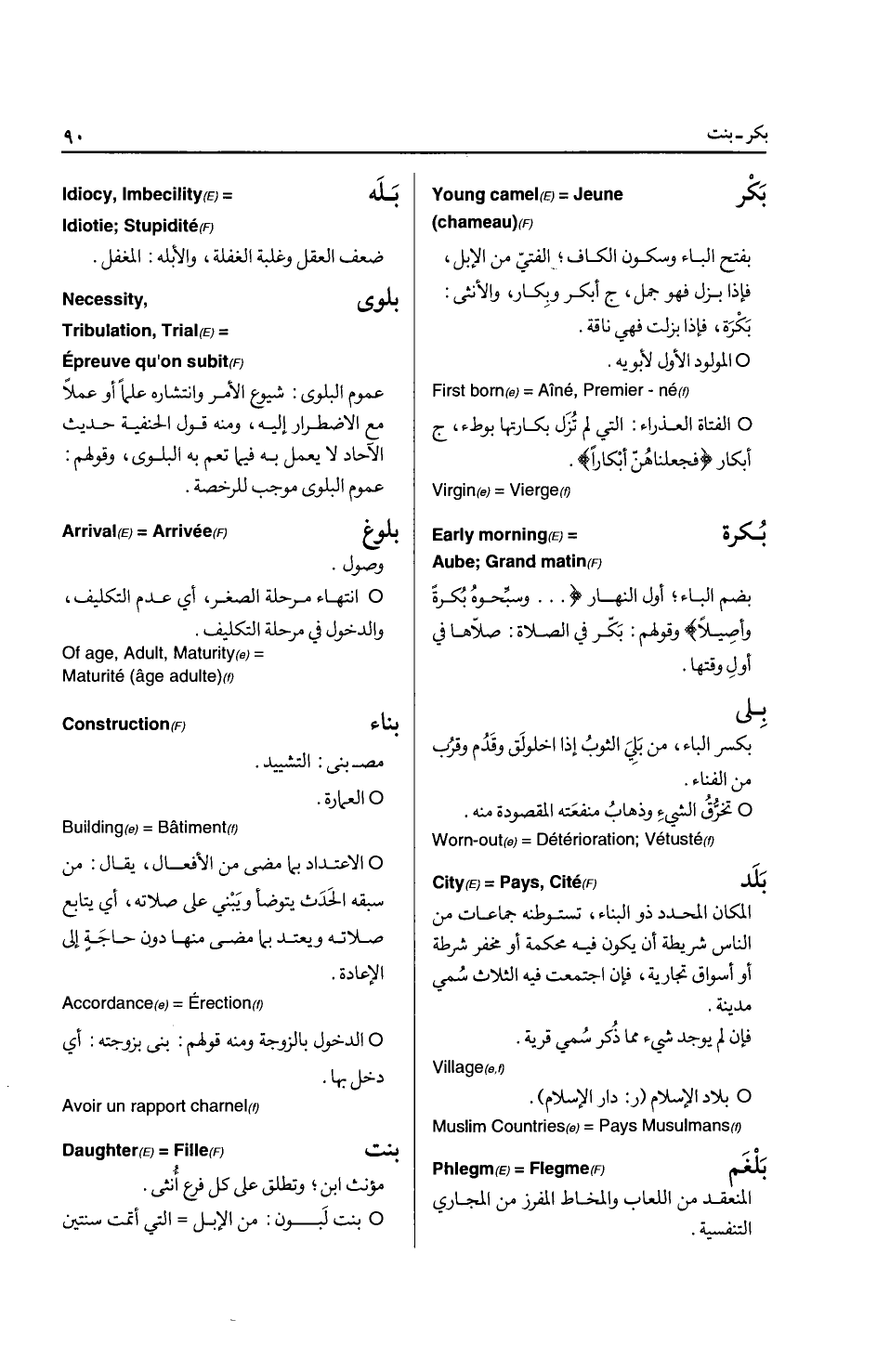 * من لا يقرأ ولا يكتب أصلا ... LLLIterate الامير: من كان له الرئاسة (الولاية) على قوم ... Chief الامين: الموثوق منه والمركون إليه / / - الحافظ / / - المتصف بالامانة كل من كانت عنده أمانة (ر: أمانة) ... Trustee * أمين السر: كاتم السر ... Secretary الاناء: وعاء الطعام والشراب، ج آنية، وجمع الانية: أواني.