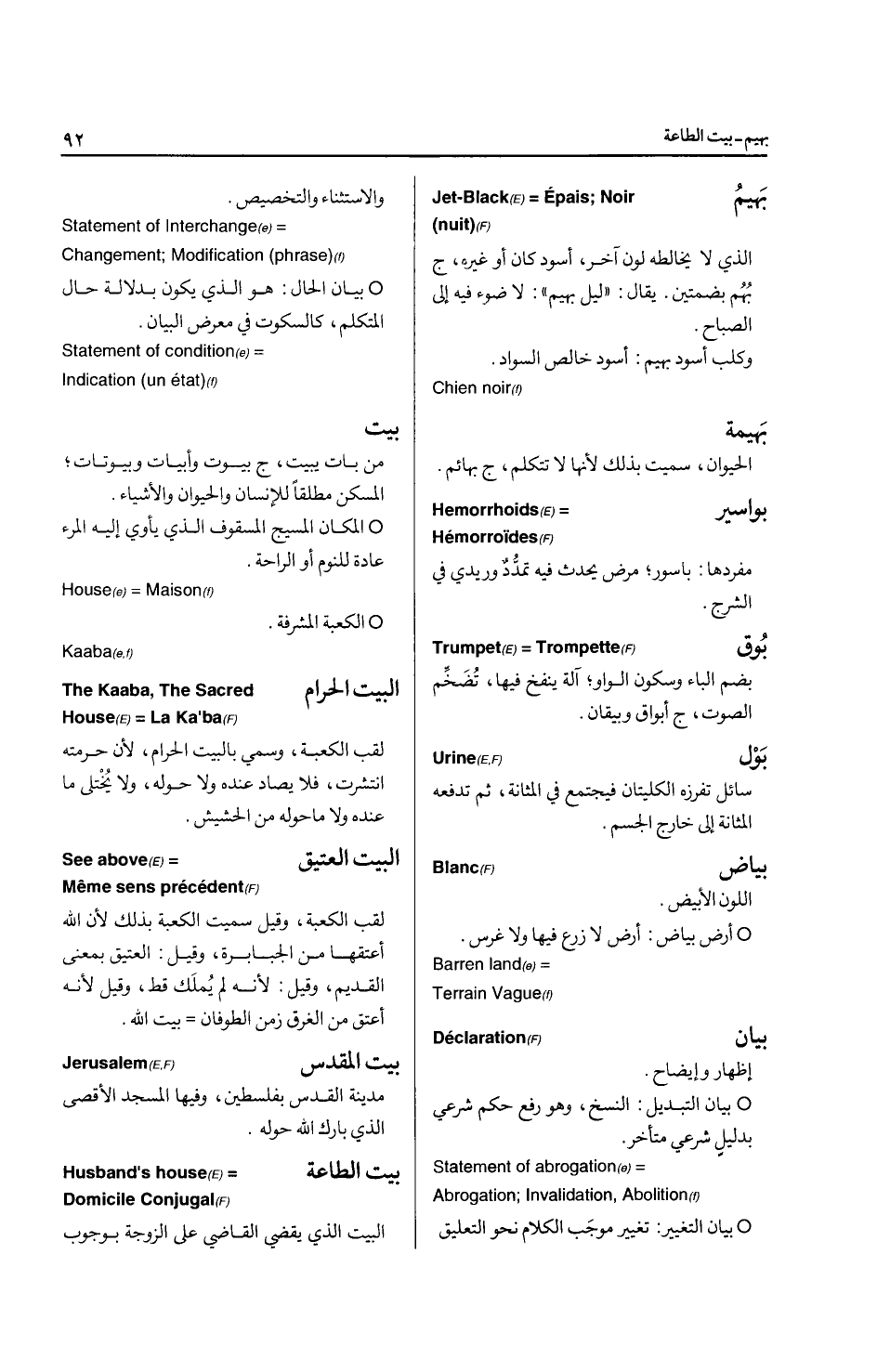 * جماع البهائم ... Copulation الانزال: مص أنزل إذا أطلق يراد به: إنزال المني ... Ejaculation الانسان: المخلوق الحي المفكر للمذكر والمؤنث، ج أناسي وأناس ... Human being إنشاء: ايجاد الشئ بعد أن لم يكن، وانشاء العقد أو البيت: إيجاده.