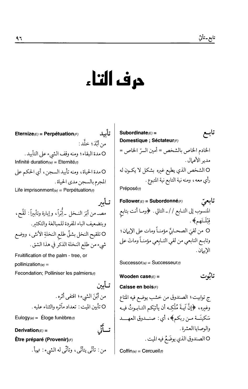 الاوان: من آن، الحين ومنه: آن أو ان التسليم ... Season الاوب: من آب، الرجعة ... Return ومنه آب إلى الله، إذا تاب من الذنب ورجع إلى الالتزام بشريعة الله.