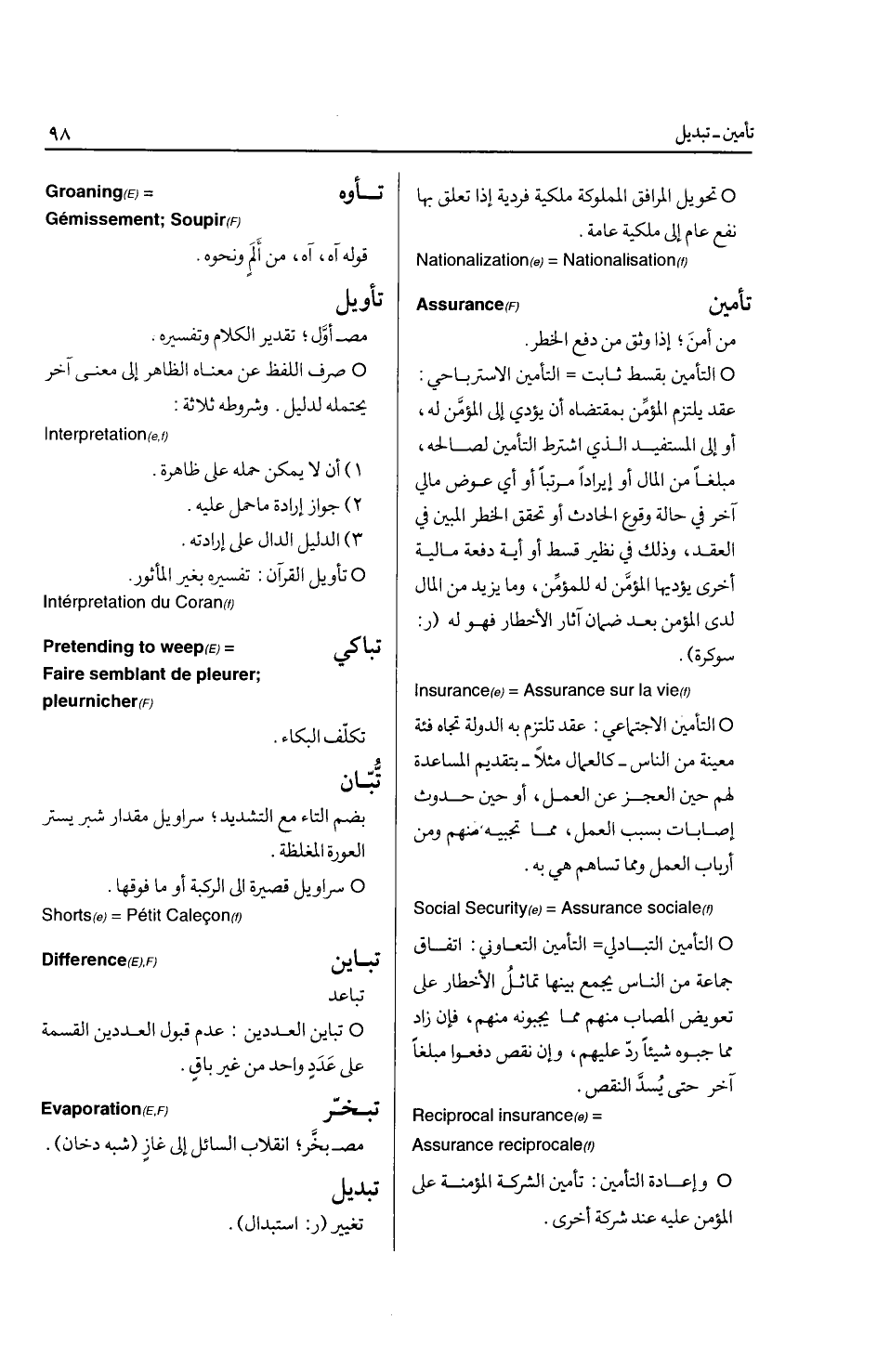 * إقامة الغير مقام النفس بعد الموت في استحقاق المال أو الاشراف على شأن من يخلفه الموصي من الاهل والمال ... Bequest الايغال: من أوغل، الامعان في البعيد ... Stepping quickly * الايغال في البلاد: دخولها والابعاد فيها ... Penetrate into * الايغال في المسألة: التوسع في بحثها والتعمق فيها.