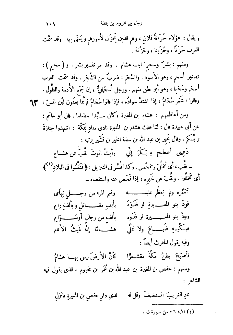 ومنهم: حفص بن المغيرة بن عبد الله بن عُمَر بن مخزوم، الذي يقول فيه الشاعر: