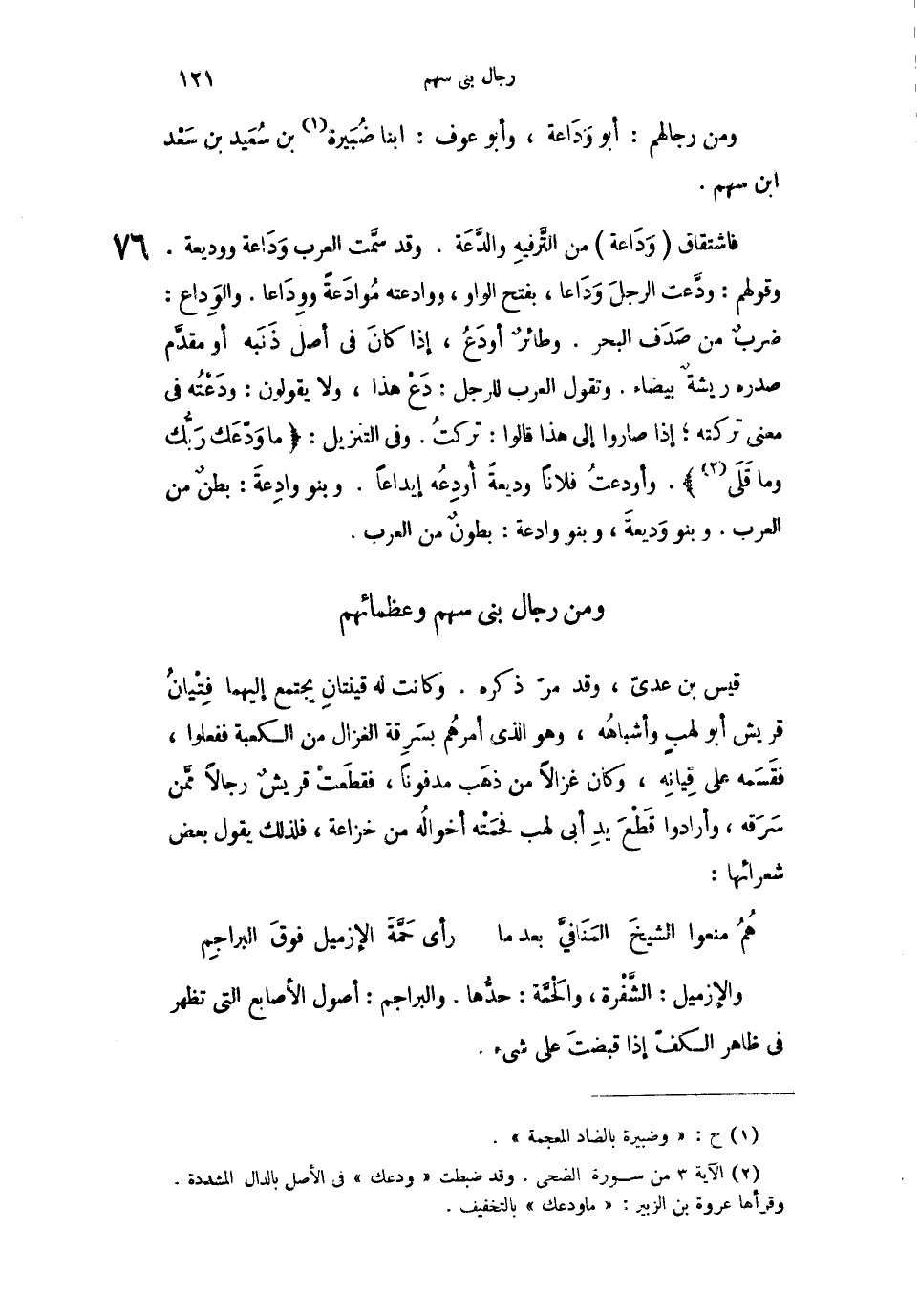 ومن رجالهم: أبو وَدَاعة، وأبو عوف: ابنا ضُبيرة بن سُعَيد بن سَعْد ابن سهم.