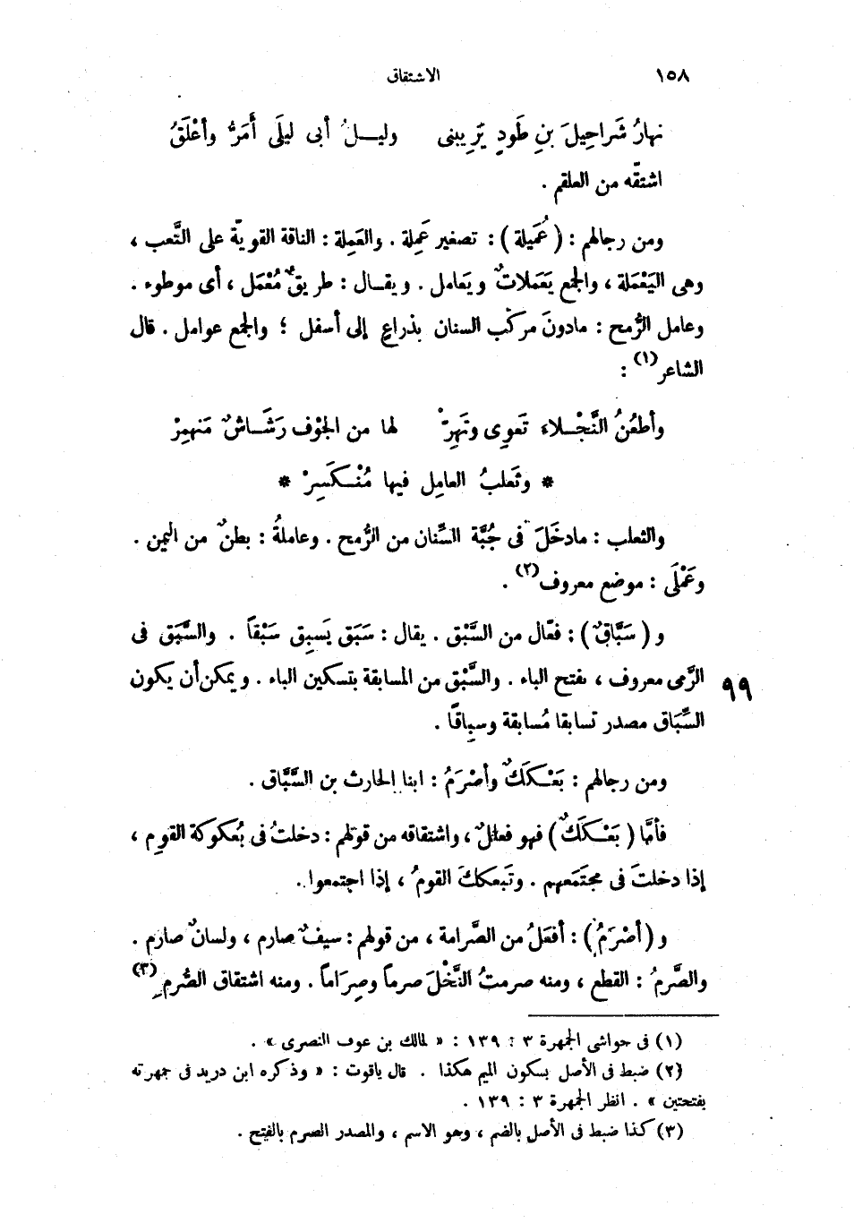 ومن رجالهم: عُمَيلة: تصغير عَمِلة. والعَمِلة: الناقة القويةّ على التَّعب، وهي اليَعْمَلة، والجمع يَعَملاتٌ ويَعامل. ويقال: طريقٌ مُعْمَل، أي موطوء. وعامر الرُّمح: ما دونَ مركب السنان بذراعٍ إلى أسفل؛ والجمع عوامل. قال الشاعر: