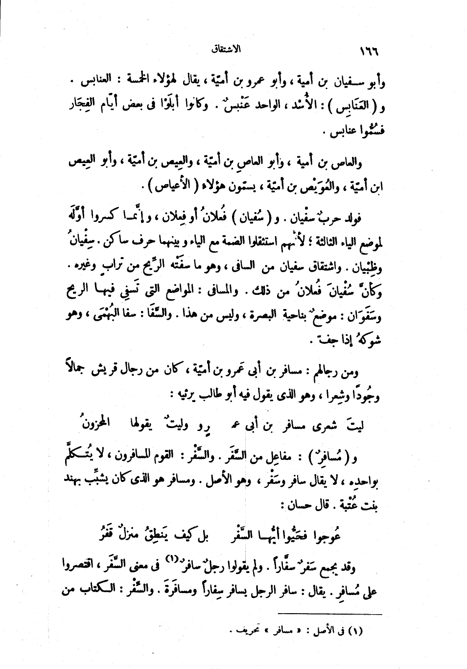 فولد حربٌ سفيان. وسُفيان فُعلانُ أو فِعلان، وإنَّما كسروا أوَّلَه لموضع الياء الثالثة، لأنهم استثقلوا الضمة مع الياء وبينهما حرف ساكن. سِفْيانُ وظِبْيان. واشتقاق سفيان من السافي، وهو ما سفَتْه الرِّيح من ترابٍ وغيره. وكأنَّ سُفْيانَ فُعلانُ من ذلك. والمسافي: المواضع التي تَسفِي فيها الريح وسَفَوان: موضعٌ بناحية البصرة، وليس من هذا. والسَّفَا: سفا البُهْمَى، وهو شوكهُ إذا جفّ.
