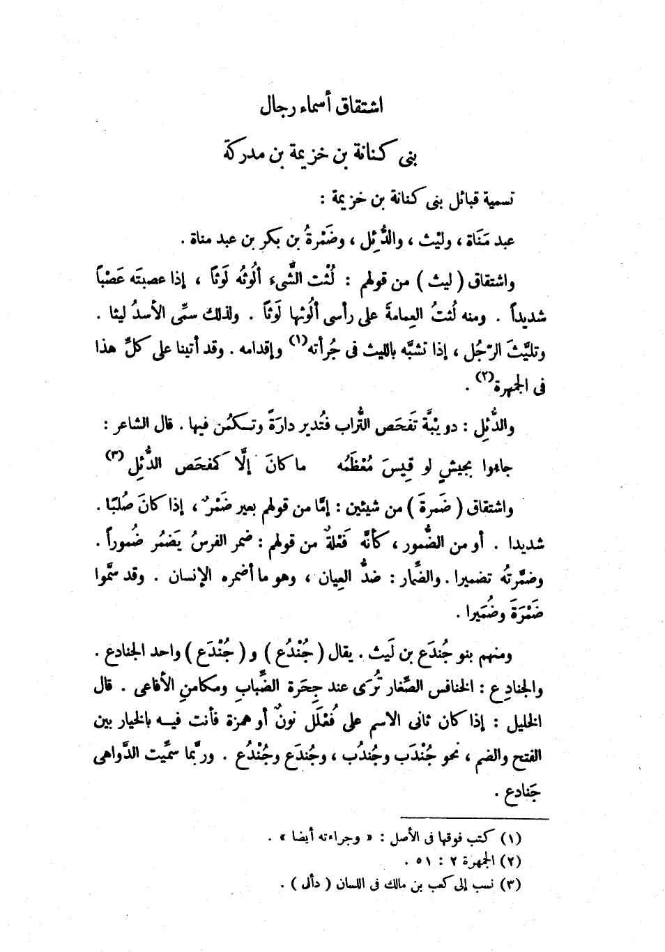اشتقاق أسماء رجال بني كنانة بن خزيمة بن مدركة