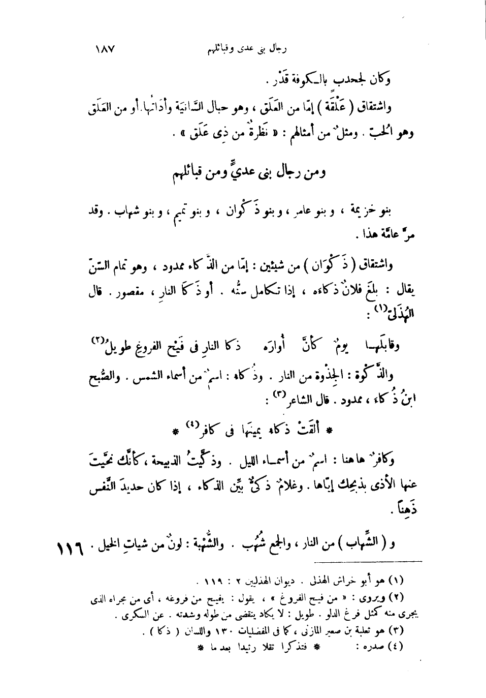 ومن رجال بني عديٍّ ومن قبائلهم بنو خزيمة، وبنو عامر، وبنو ذَكْوان، وبنو تميم، وبنو شهاب. وقد مرَّ عامَّة هذا.