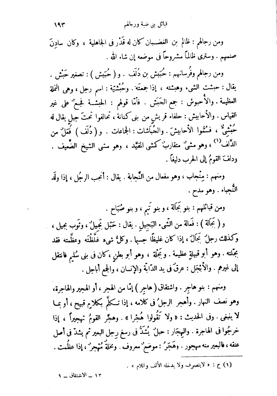 ومنهم: بنو هاجِر. واشتقاق هاجِر إمّا من الهجر، أو الهجير والهاجرة، وهو نصف النهار. واهجر الرجلُ في كلامه، إذا تكلَّم بكلامٍ قبيح، أو بما لا ينبغي. وفي الحديث: " ولا تَقُولوا هُجْرا " وهجّر القومُ تهجيراً، إذا خرجُوا في الهاجرة. والتجار: حبلٌ يُشَدُّ في رسغ رِجل البعير ثم يشدّ في أصل عنقه، فالبعير منه مهجور. وهَجَرُ: موضعٌ معروف. وبخلةٌ مُهْجرٌ، إذا عظُمتْ.
