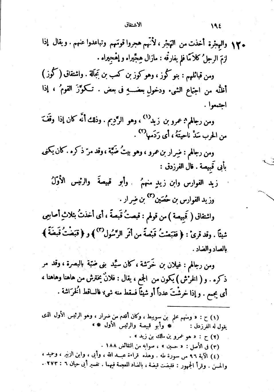 واشتقا قَبِيصة من قولهم: قبصتُ قَبصةً، أي أخذتُ بثلاثِ أصابعِي شيئاً. وقد قرئ: " فقبَصتُ قَبْصةً من أثَر الرَّسُول " و " قبَضْتُ قَبضَةً " بالصاد والضاد.