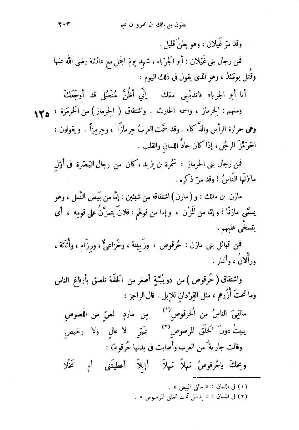 ومنهم: الحِرماز، واسمه الحارث. واشتقاق الحِرماز من الحَرمَزة، وهي حرارة الرأس والذَّكاء. وقد سمَّت العربُ حِرمازاً، وحِرمِزاً. ويقولون: احْرَمَّزَ الرجُل، إذا كان حادَّ اللِسانِ والقلب.