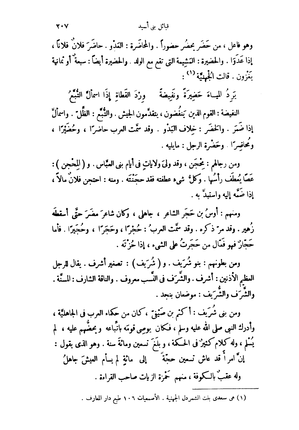 النفيضة: القوم الذين يَنفُضون، يتقدَّمون الجيش. والتُّبَّع: الظِّلّ. واسمألَّ إذا ضَمَر. والحَضَر: خِلاف البَدْو. وقد سمَّت العرب حاضراً، وحُضَيْراً، ومُحاضِراً وحَضْرة الرجل: ما يليه.