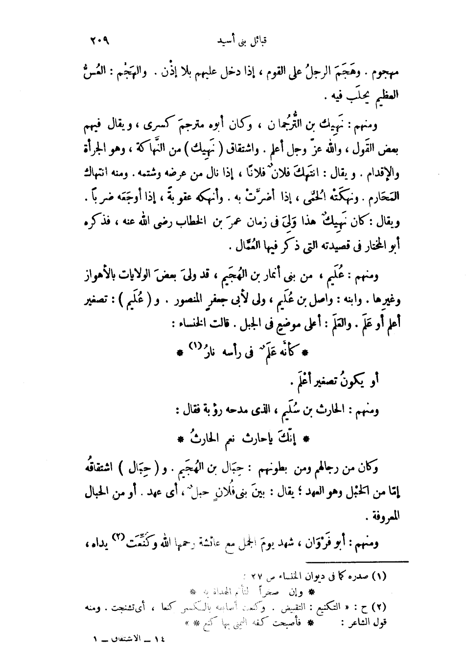 ومنهم: نَهِيك بن التُّرُجمان، وكان أبوه مترجمَ كسرى، ويقال فيهم بعض القَول، والله عزّ وجل أعلم. واشتقاق نَهِيك من النَّهاكة، وهو الجرأة والإقدام. ويقال: انتَهكَ فلانٌ فلاناً، إذا نال من عرضه وشتمه. ومنه انتهاك المَحَارم. ونهكَتْه الحُمَّى، إذا أضرَّتْ به. وأنهكه عقوبةً، إذا أوجَعَه ضرباً. ويقال: كان نَهِيكٌ هذا وَلِيَ في زمان عمرَ بن الخطاب رضي الله عنه فذكره أبو المختار في قصيدته التي ذكر فيها العُمَّال.