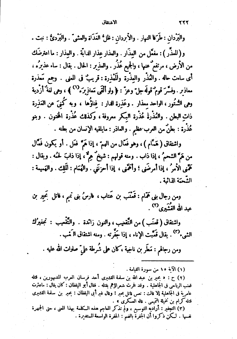 واشتقاق هَمَّام، وهو فَعّال من الهمّ، إذا هَمَّ فعَل. أو يكون فَعَّال من هَمَّ الشحمُ، إذا ذاب. ومنه قولهم: شيخٌ هِمٌّ، إذا ذابَ لحمُه. ويقال: هَمَّني الأمرُ، إذا أمرضَني؛ وأهَمَّني، إذا أحزنَني. والهُمَام: المَلِك. والهَميمة: الشّحمَة الذائبة.