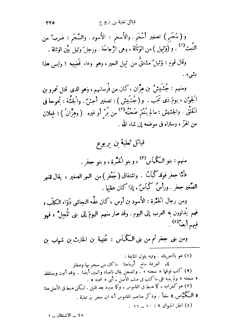 فأمَّا جعفر فولد كُبَاساً. واشتقاق جَعْفر من النهر الصغير، يقال للنهر الصَّغير جعفر. ورأسٌ كُبَاسٌ، إذا كان عظيماً.