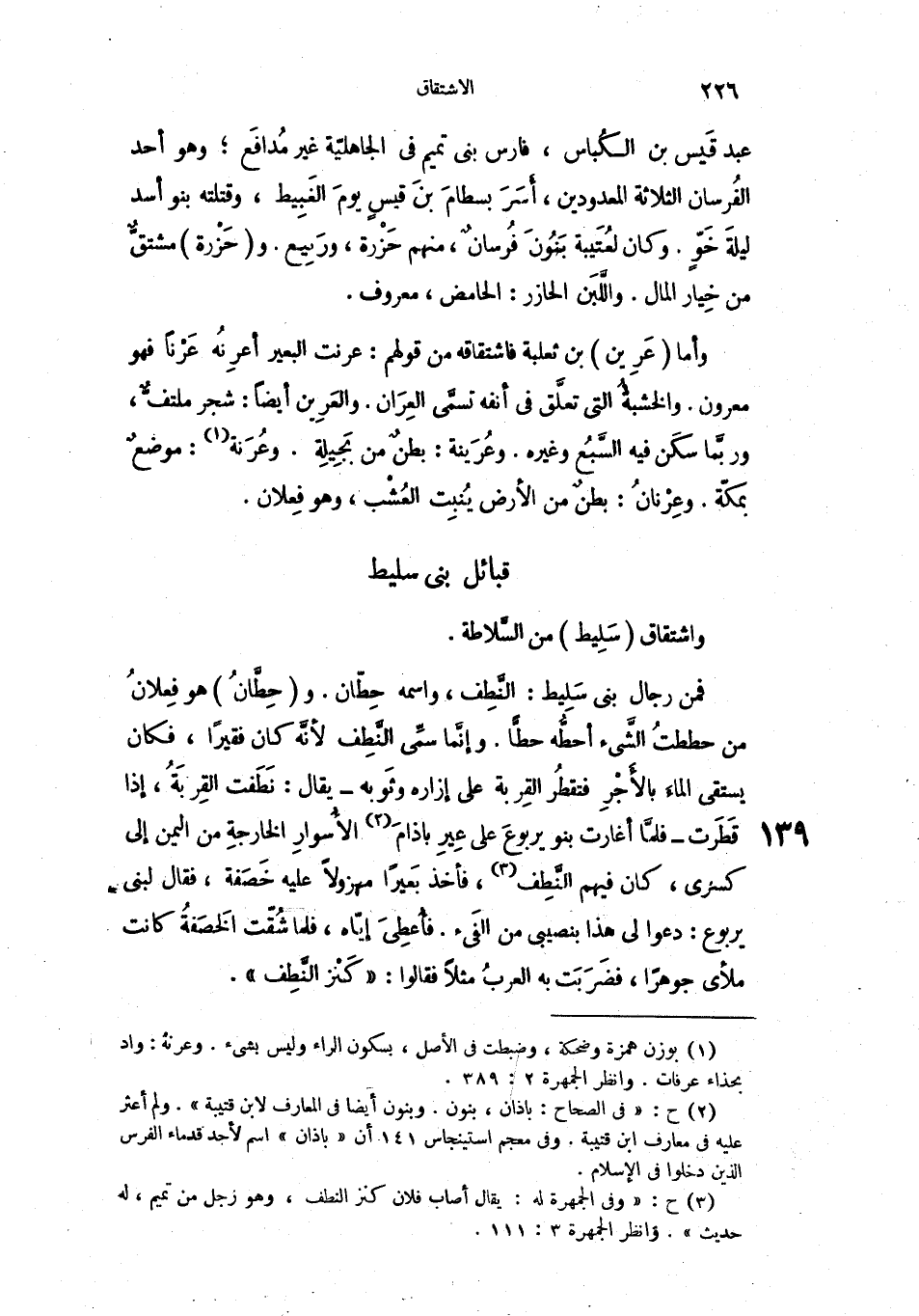 وأما عَرِين بن ثعلبة فاشتقاقه من قولهم: عرنت البعير أعرِنُه عَرْناً فهو معرون، والخشبةُ التي تعلَّق في أنفه تسمَّى العِرَان. والعَرِين أيضاً: شجر ملتفٌّ، وربمَّا سكَن فيه السَّبُع وغيره. وعُرَينة: بطنٌ من بَجِيلِة، وعُرَنة: موضعٌ بمكّة. وعِرْنانُ: بطنٌ من الأرض يُنبِت العُشْب، وهو فِعلان.