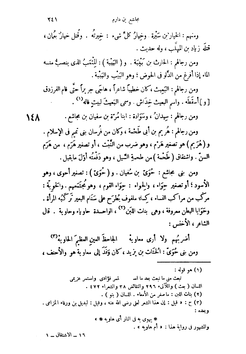 ومن بني مجاشع: حُوَىّ بن سُفيان. وحُوَى: تصغير أحوى، وهو الأسود؛ أو تصغير حِوَاء، والحِواء القوم، وهو مُجتَمَعهم. والحَوِيّة: مركَب من مراكب النساء، كِساءٌ ملفوف يُطرَح على سَنَام البعير تَرَكَبُه المرأة. وحَوَايا البطن معروفة، وهي بنات اللبَن، الواحدة حاوياء وحاوية. قال الشاعر، الأخنس: