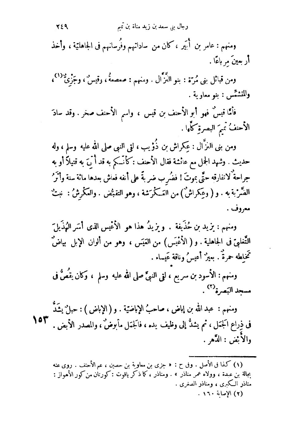 فأمَّا قيسٌ فهو أبو الأحنف بن قيس، واسم الأحنف صخر. وقد سادَ الأحنفُ تميمَ البصرةِ كلَّها.