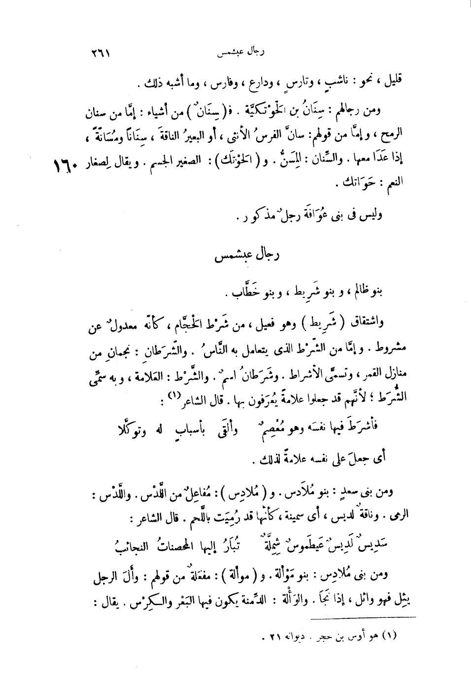 واشتقاق شَرِِيط وهو فعيل، من شَرْط الحَجَّام، كأنّه معدولٌ عن مشروط. وإمَّا من الشّرْط الذي يتعامل به النَّاسُ. والشَّرَطانِ: نجمانِ من منازل القمر، وتسمَّى الأشراط. وشَرَطانُ اسمٌ. والشِّرْط: العَلامة، وبه سمِّي الشُّرَط؛ لأنَّهم قد جعلوا علامةً يعُرَفون بها. قال الشاعر:
