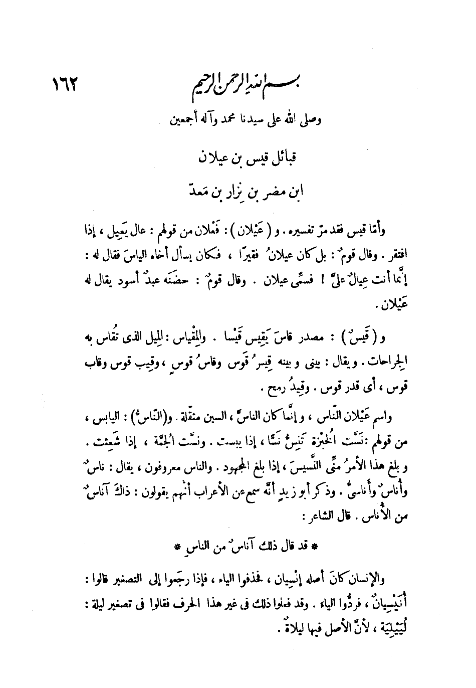 واسم عَيْلان النّاس، وإنَّما كان الناسَّ، السين مثقَلة والنّاسُّ: اليابس، من قولهم: نَسَّت الخُبْزة تَنِسُّ نَسَّاً، إذا يبست، ونسَّت الجُمَّة، إذا شَعِئت. وبلغ هذا الأمرُ منِّي النَّسيسَ، إذا بلغ المجهود. والناس معروفون، يقال: ناسٌ وأناسٌ وأناسُّ. وذكر أبو زيدٍ أنه سمع عن الأعراب أنهم يقولون: ذاكَ آناسٌ من الأُناس. قال الشاعر: