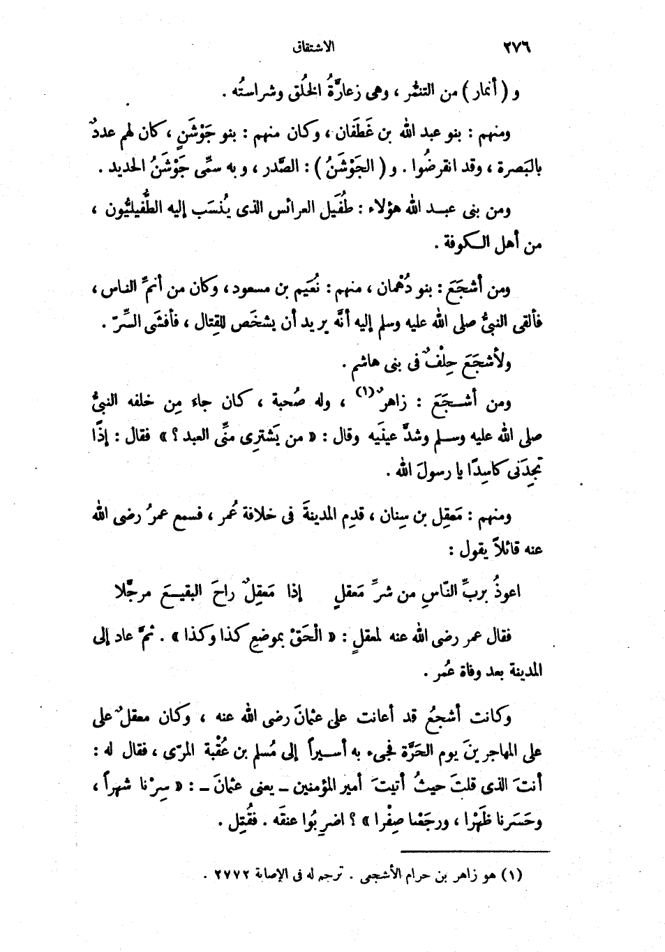 ومن أشجَعَ: زاهرٌ، وله صُحبة، كن جاءَ مِن خلفه النبيُّ صلى الله عليه وسلم وشدَّ عينَيه وقال: " من يَشترِي منِّي العبد؟ " فقال: إذاً تجِدَني كاسِداً يا رسولَ الله.
