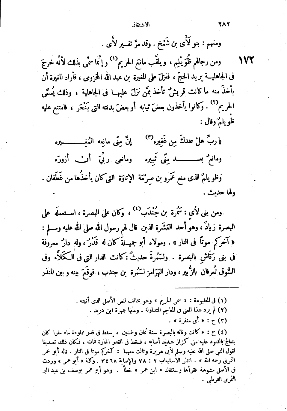 ومن بني لأيٍ: سَمُرة بن جُنْدَب، وكان على البصرة، استعملَه على البصرة، زيادٌ وهو أحد العَشَرة الذين قال لهم رسول الله صلى الله عليه وسلم: " آخركم موتاً في النار ". ومولاه أبو جميلةَ كان له قَدْرٌ، وله دارٌ معروفة في بني رَقَاشِ بالبصرة. ولسَمُرةَ حديثٌ: كانت الدار التي في الكَلاَّء وفي السُّوق تُعرفان بالزُّبير، ودار الهَرَامز لسَمُرة بن جندب، فوقَعَ بينه وبين المنذر