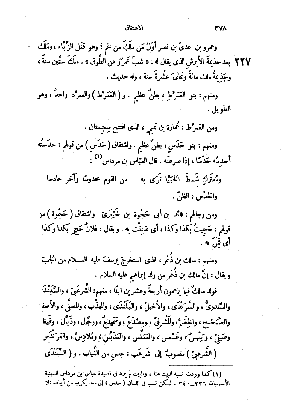 ومنهم: بنو حَدَسٍ، بطنٌ عظيم واشتقاق حَدَسٍ من قولهم: حدَستُه أحدِسُه حَدْساً، إذا صرعتَه. قال العبّاس بن مرداس: