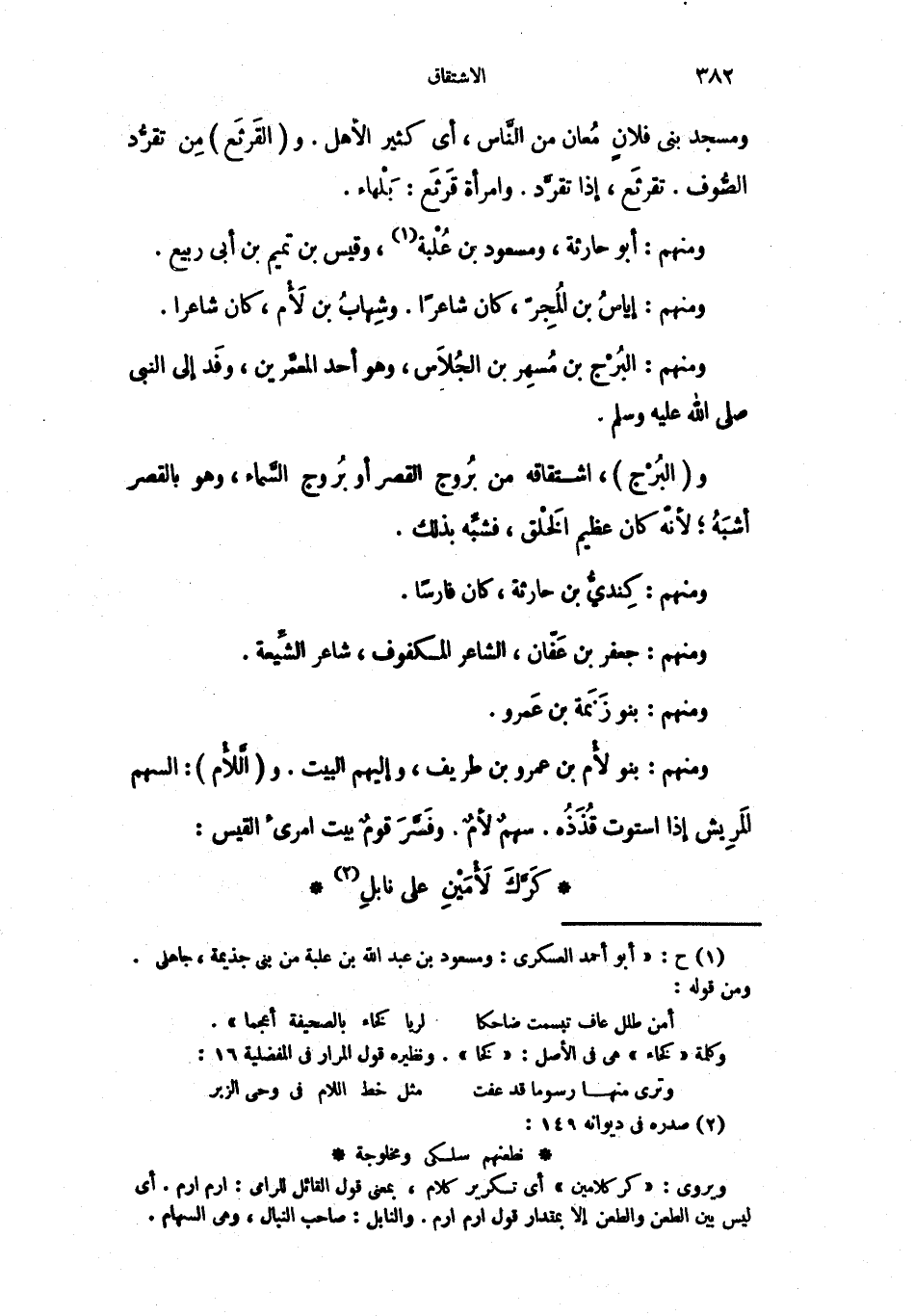 ومنهم: بنو لأْم بن عمرو بن طريف، وإليهم البيت. والَّلأُم: السهم المَرِيش إذا استوت قُذَذُه. سهمٌ لأمٌ. وفَسَّرَ قومٌ بيت امرئ القيس: