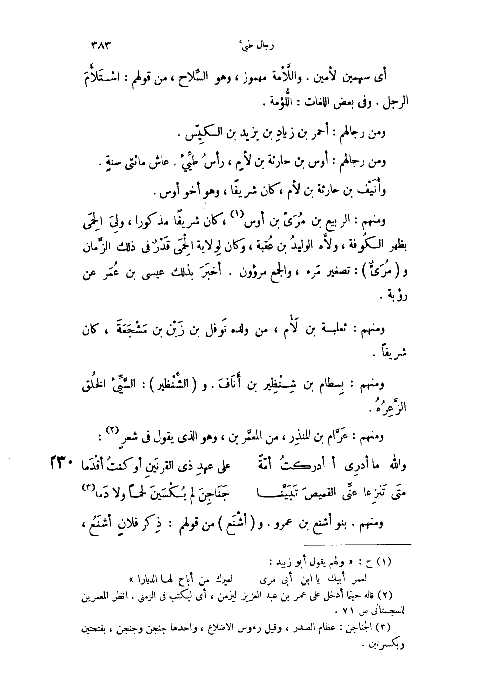 ومن رجالهم: أوس بن حارثة بن لأمٍ، رأسُ طيِّيء، عاش مائتي سنةٍ.