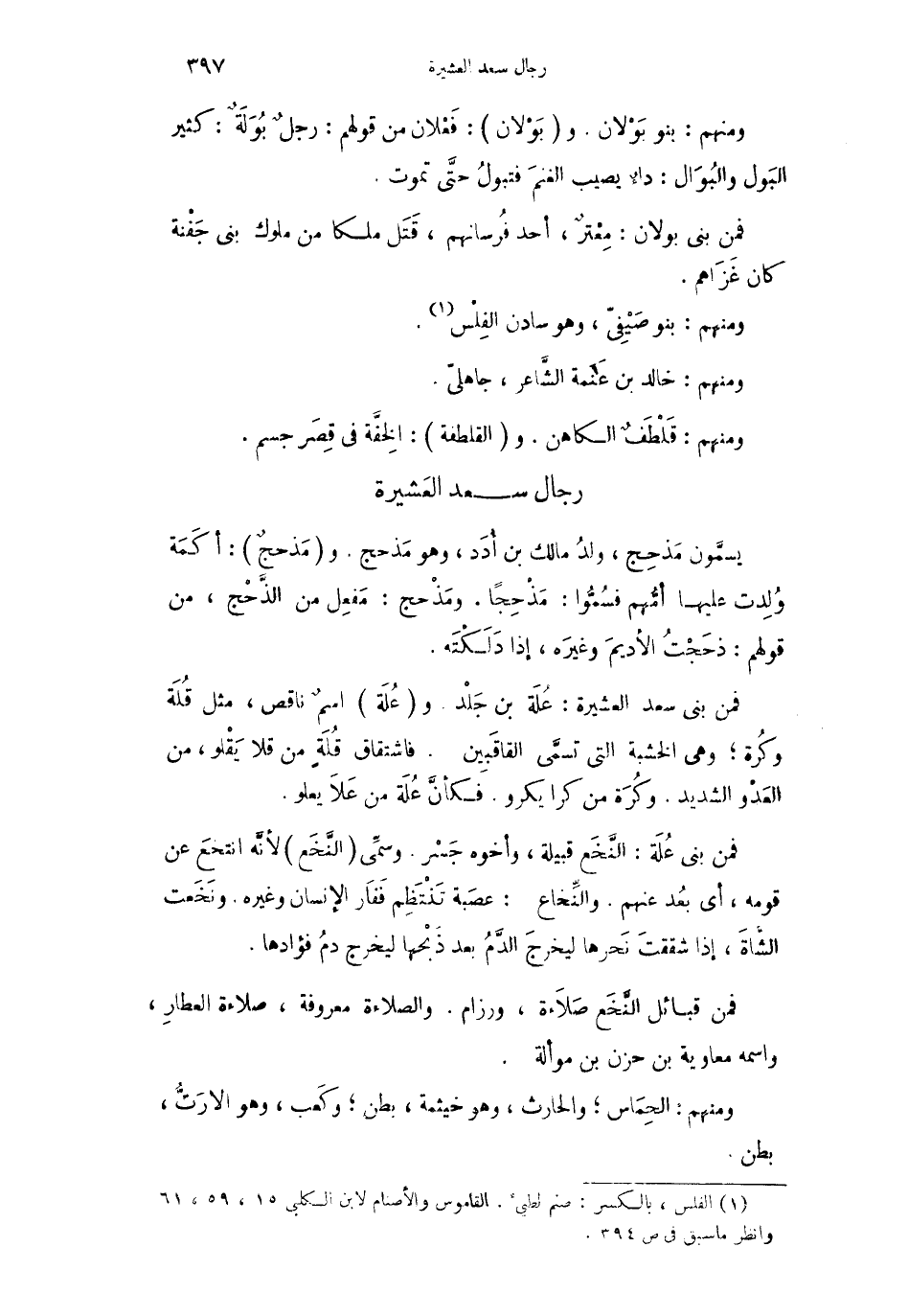 ومنهم: بنو بَوْلان. وبَوْلان: فَعْلان من قولهم: رجلٌ بُوَلَةٌ: كثير البَول والبُوَال: داءٌ يصيب الغنَم فتبولُ حتَّى تموت.