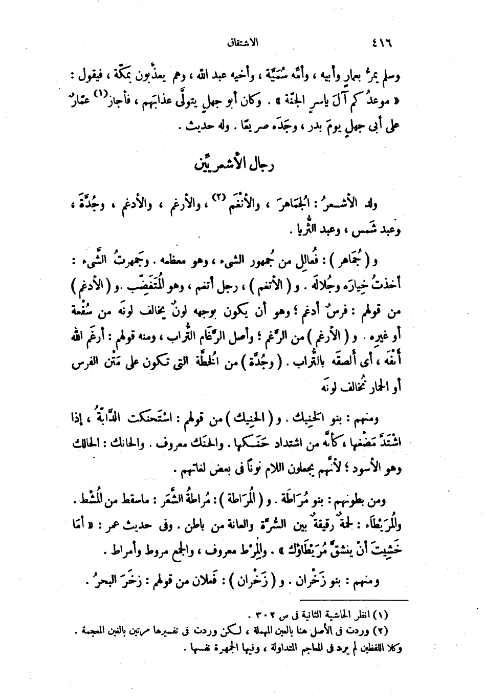 ولد الأشعرُ: الجُمَاهرَ، والأنْغَم والأرغم، والأدغم، وجُدَّةَ وعبد شَمس وعبد الثُّريا.