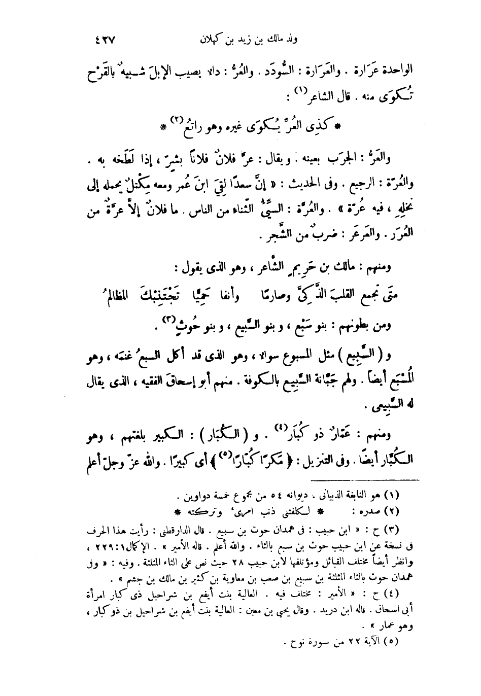ومنهم: عَمّارٌ ذو كُبَار. والكُبَار: الكبير بلغتهم، وهو الكُبَّار أيضاً. وفي التنزيل " مَكراً كُبّاراً " أي كبيراً والله عزّ وجلّ أعلم.