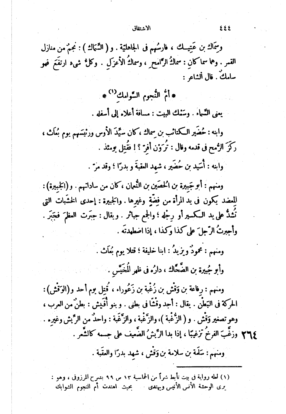 وسِمَاك بن عَتِيك، فارسُهم في الجاهليّة. والسَّمَاك: نجمٌ من منازل القمر. وهما سماكانِ: سماكً الرَّامحِ، وسماكُ الأعزَلِ. وكلُّ شيءٍ ارتفَعَ فهو سامكٌ. قال الشاعر: