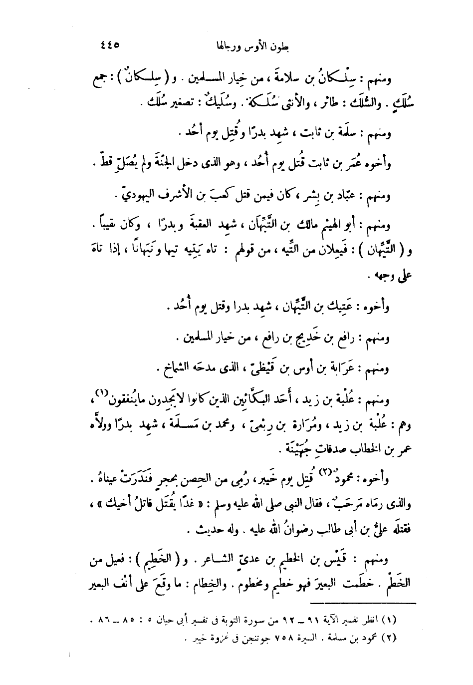 ومنهم: سلَمة بن ثابت، شهِد بدراً وقُتِل يوم أحُد.