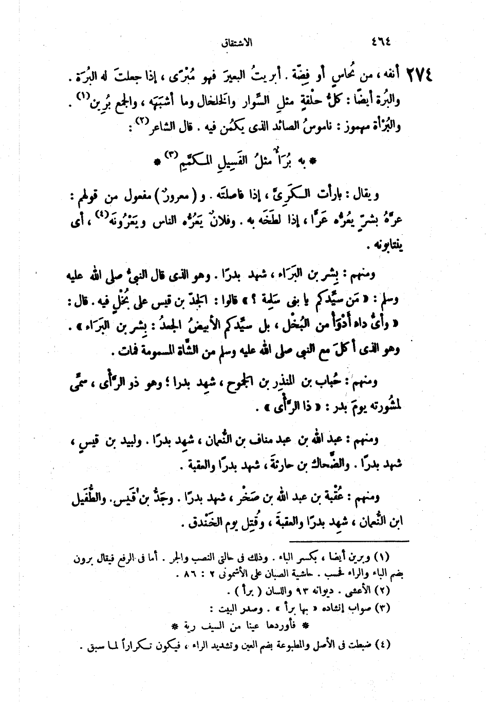 ومنهم: بِشر بن البَرَاء، شهد بدراً. وهو الذي قال النبيُّ صلى الله عليه وسلم: " مَن سيِّدكم يا بني سَلِمة؟ " قالوا: الجَدّ بن قيس على بُخْلٍ فيه. قال: " وأيُّ داءٍ أَدْوَأْ من البُخْل، بل سيِّدكم الأبيضُ الجعدُ: بِشر بن البَرَاء ". وهو الذي أكلَ مع النبي صلى الله عليه وسلم من الشَّاة المسمومة فمات.