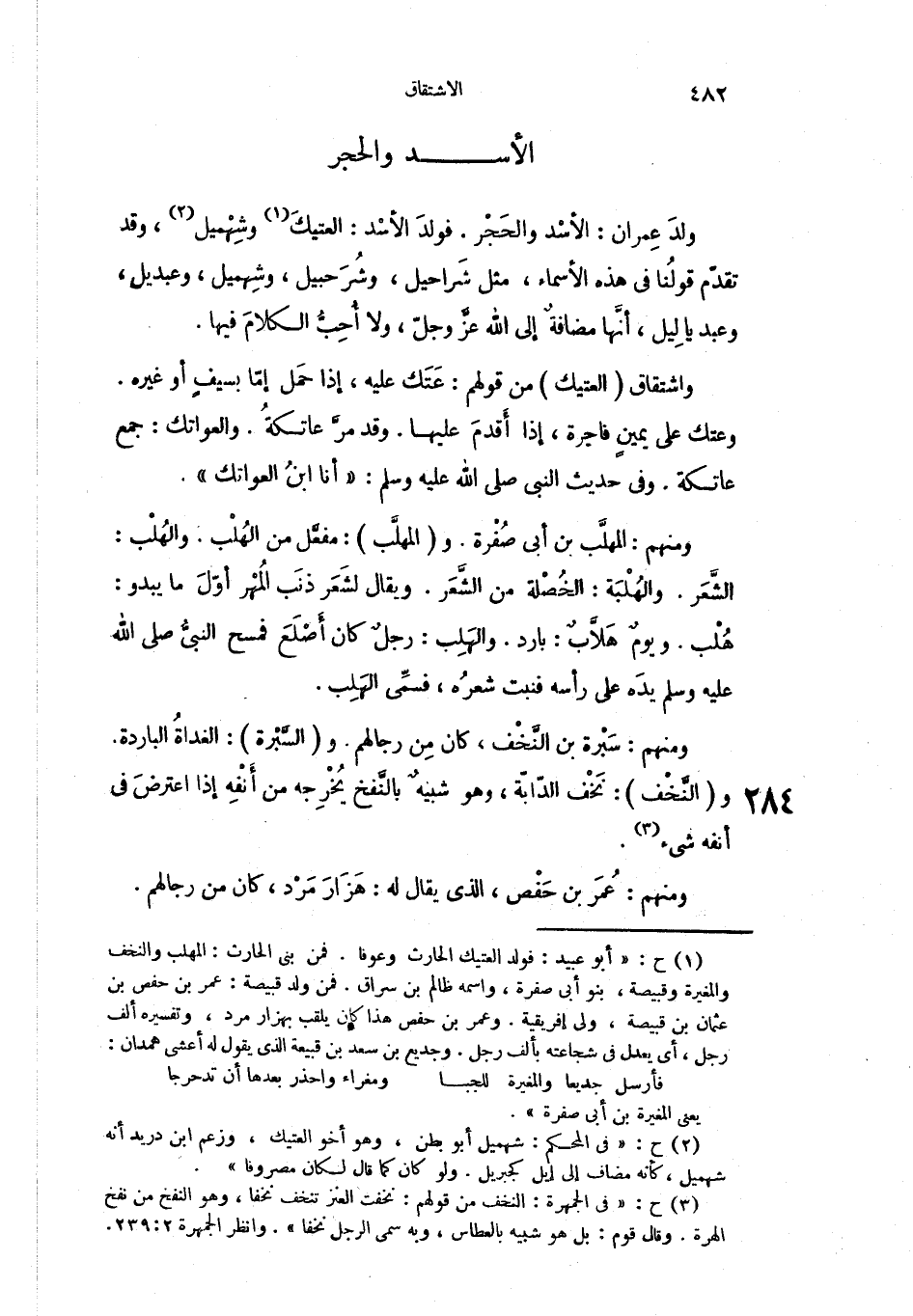 ولدَ عِمران: الأسْد والحَجْر. فولدَ الأسْد: العتيكَ وشِهْيل وقد تقدّم قولنُا في هذه الأسماء، مثل شَراحيل، وشُرَحبيل وشِهيل وعبديل وعبد يالِيل، أنَّها مضافةٌ إلى الله عزّ وجلّ ولا أُحِبُّ الكلامَ فيها.