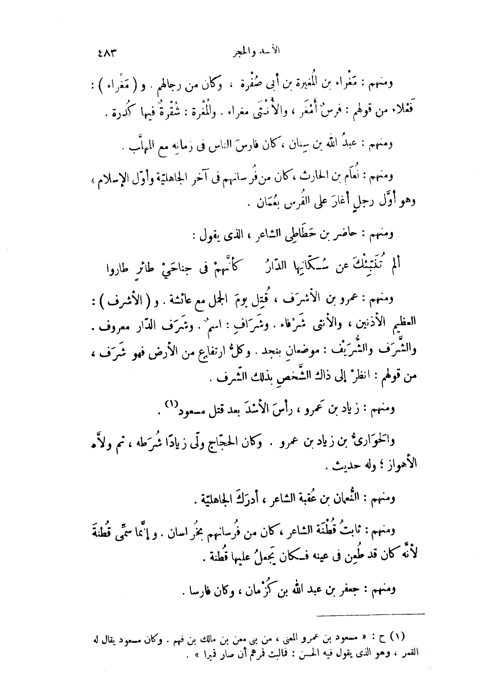 ومنهم: زياد بن عَمرو رأسَ الأسْدَ بعد قتل مسعود.