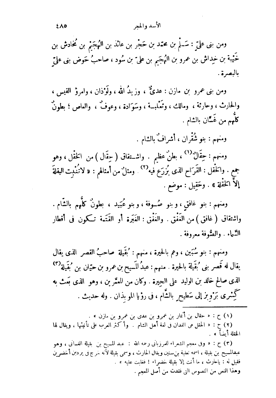 ومنهم: حِقَالٌ، بطنٌ عظيم. واشتقاق حِقَال من الحَقْل، وهو جمع. والحَقْل: القَرَاح الذي يُزرَع فيه ومثلٌ من أمثالهم: " لا تُنْبِت البقلةَ إلاَّ الحَقْلة ". وحَقِيل: موضع.