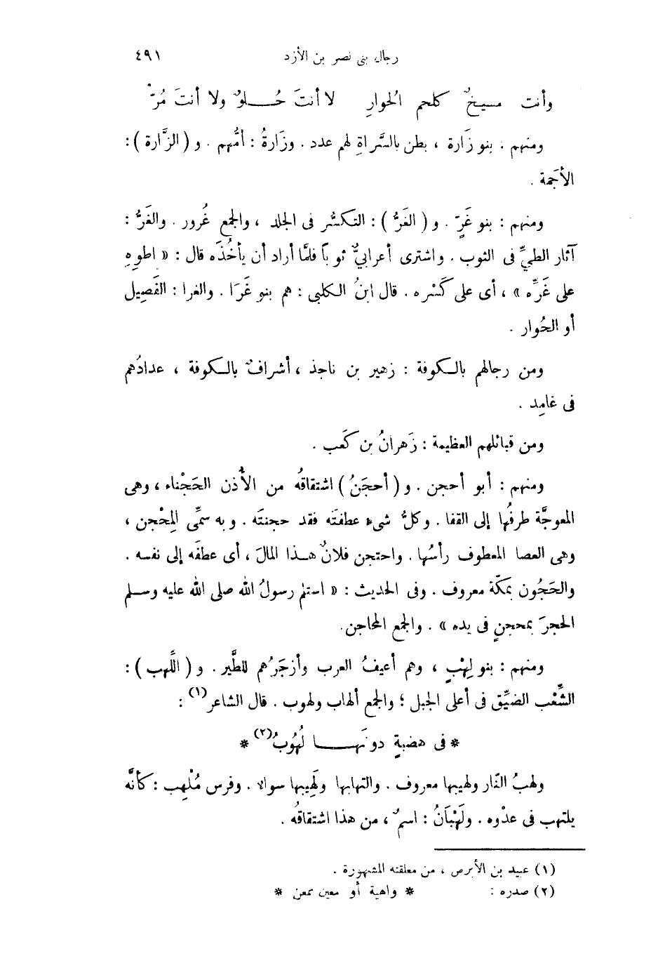 ومنهم: بنو لِهْبٍ، وهم أعيفُ العرب وأزجَرُهم للطَّير. واللَّهب: الشَّعْب الضِّيق في أعلى الجبل، والجمع ألهاب ولهوب. قال الشاعر: