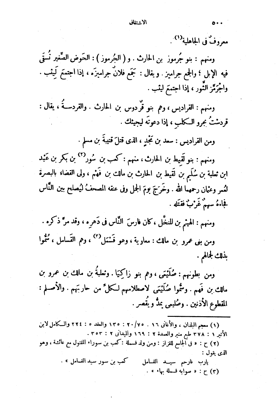 ومن بني عمرو بن مالك: معاوية، وهو قَسْمَل، وهم القَسامل، سُمُّوا بذلك لجمالهم.