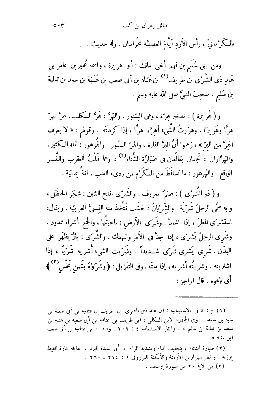 ومن بني سُلَيم بن فهم أخي مالك: أبو هريرة، واسمه عُمير بن عامر بن عَبدِ ذي الشَّرْي بن طريف بن عَبّاد بن أبي صعب بن هُنْبَة بن سعد بن ثعلبة بن سُليم. صحِبَ النبيَّ صلى الله عليه وسلم.