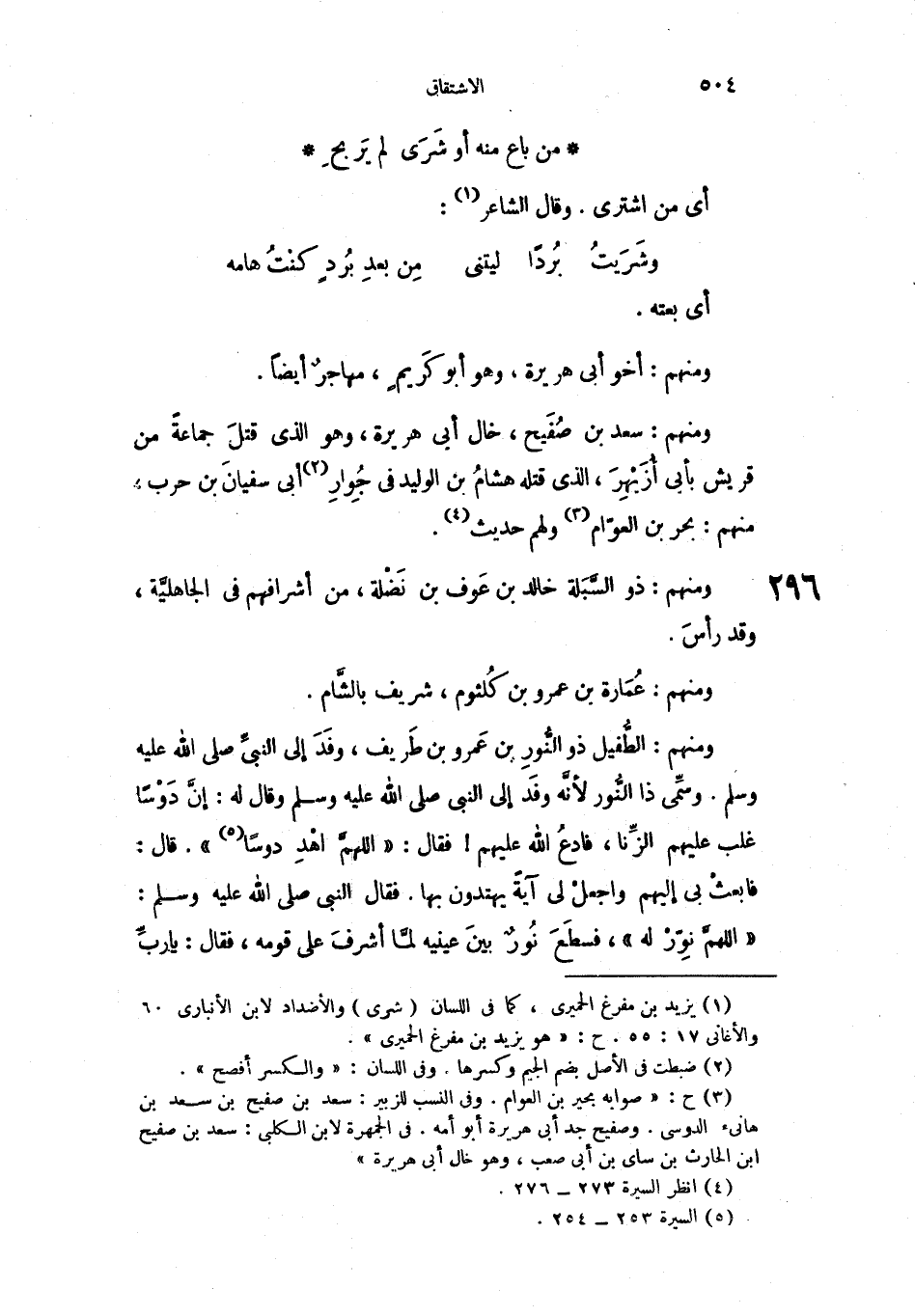 ومنهم: الطُّفَيل ذو النُّورِ بن عَمرو بن طَريف، وفَدَ النبيِّ صلى الله عليه وسلم وسمِّي ذا النُّور لأنَّه وفَدَ إلى النبي صلى الله عليه وسلم وقال له: إنَّ دَوْساً غلب عليهم الزِّنا، فادعُ الله عليهم؟؟! فقال: " اللهمَّ اهْدِ دوسَا ". قال: فابعثْ بي إليهم واجعلْ لي آيةً يهتدون بها. فقال النبي صلى الله عليه وسلم: " اللهمَّ نوِّرْ له "، فسطَعَ نُورٌ بينَ عينيه لمَّا أشرفَ على قومه، فقال: يا ربِّ