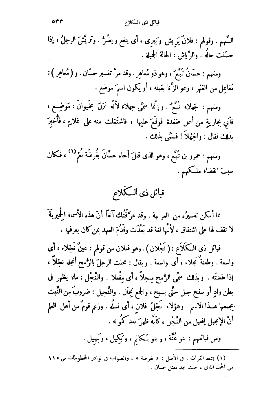 مما أمكن تفسيرُه من العربية. وقد عرَّفْتُك آنفاً أنّ هذه الأسماء الحِميريّةَ لا تقف لها على اشتقاق، لأنَّها لغة قد بَعُدَت وقَدُمَ العهد بمن كان يعرفها.