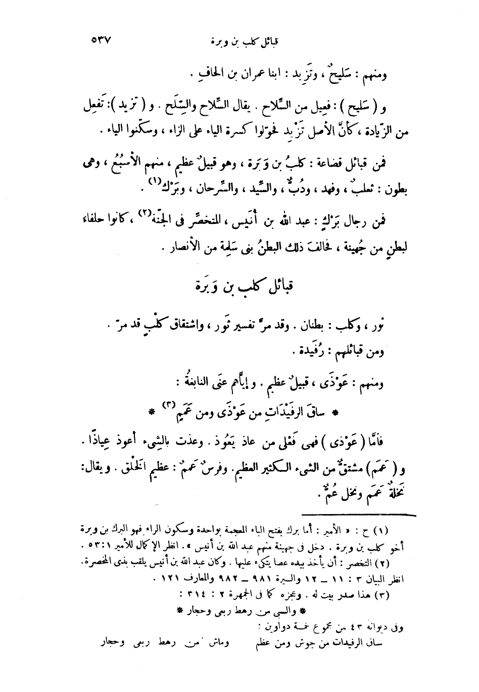 فمن قبائل قضاعة: كلبُ بن وَبَرة، وهو قبيلٌ عظيم، منهم الأسبُعُ، وهي بطون: ثعلبٌ، وفهد، ودُبٌّ، والسِّيد، والسِّرحان، وبَرْك.