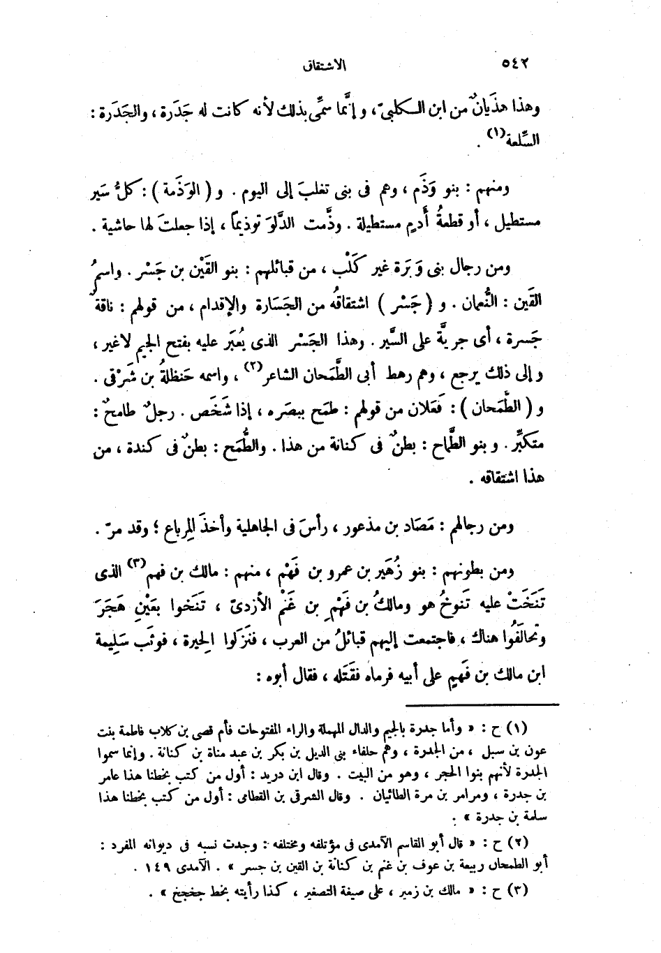 ومن رجال بني وَبَرة غير كَلْب، من قبائلهم: بنو القَيْن بن جَسْر. واسمُ القَين: النُّعمان. وجَسْر اشتقاقُه من الجَسَارة والإقدام، من قولهم: ناقة جَسرة، أي جريَّة على السَّير. وهذا الجَسْر الذي يُعبَر عليه بفتح الجيم لا غير، وإلى ذلك يرجع، وهم رهط أبي الطَّمَحان الشاعر، واسمه حَنظلةُ بن شَرْقي. والطّمَحان: فَعلاَن من قولهم: طمَح ببصَره، إذا شَخَص. رجلٌ طامحٌ: متكبِّر: وبنو الطَّماح: بطنٌ في كنانة من هذا. والطُّمَح: بطنٌ في كندة، من هذا اشتقاقه.