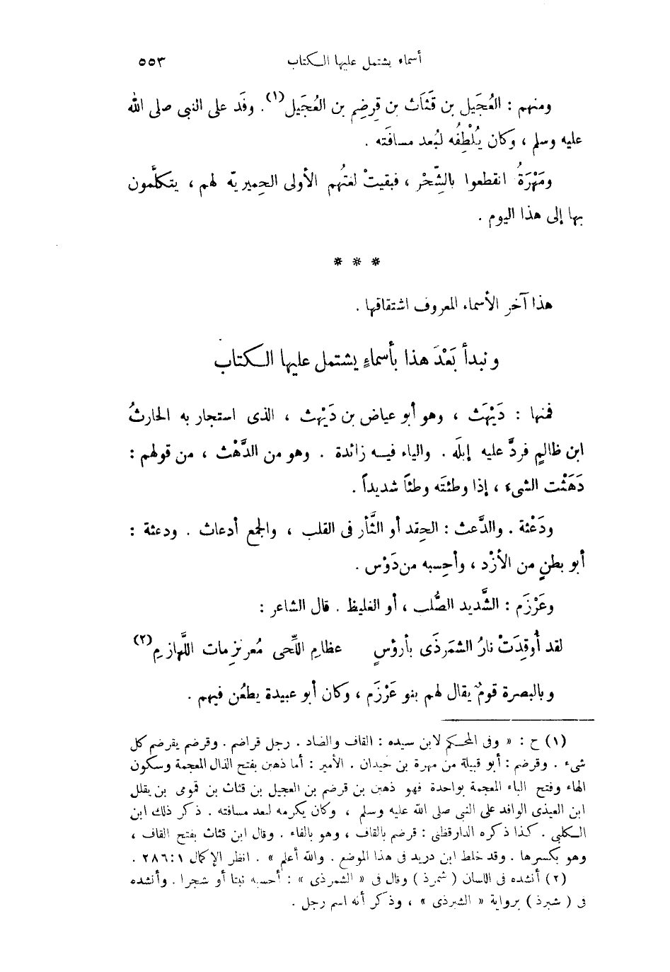 ونبد بَعْدَ هذا بأسماءِ يشتمل عليها الكتاب