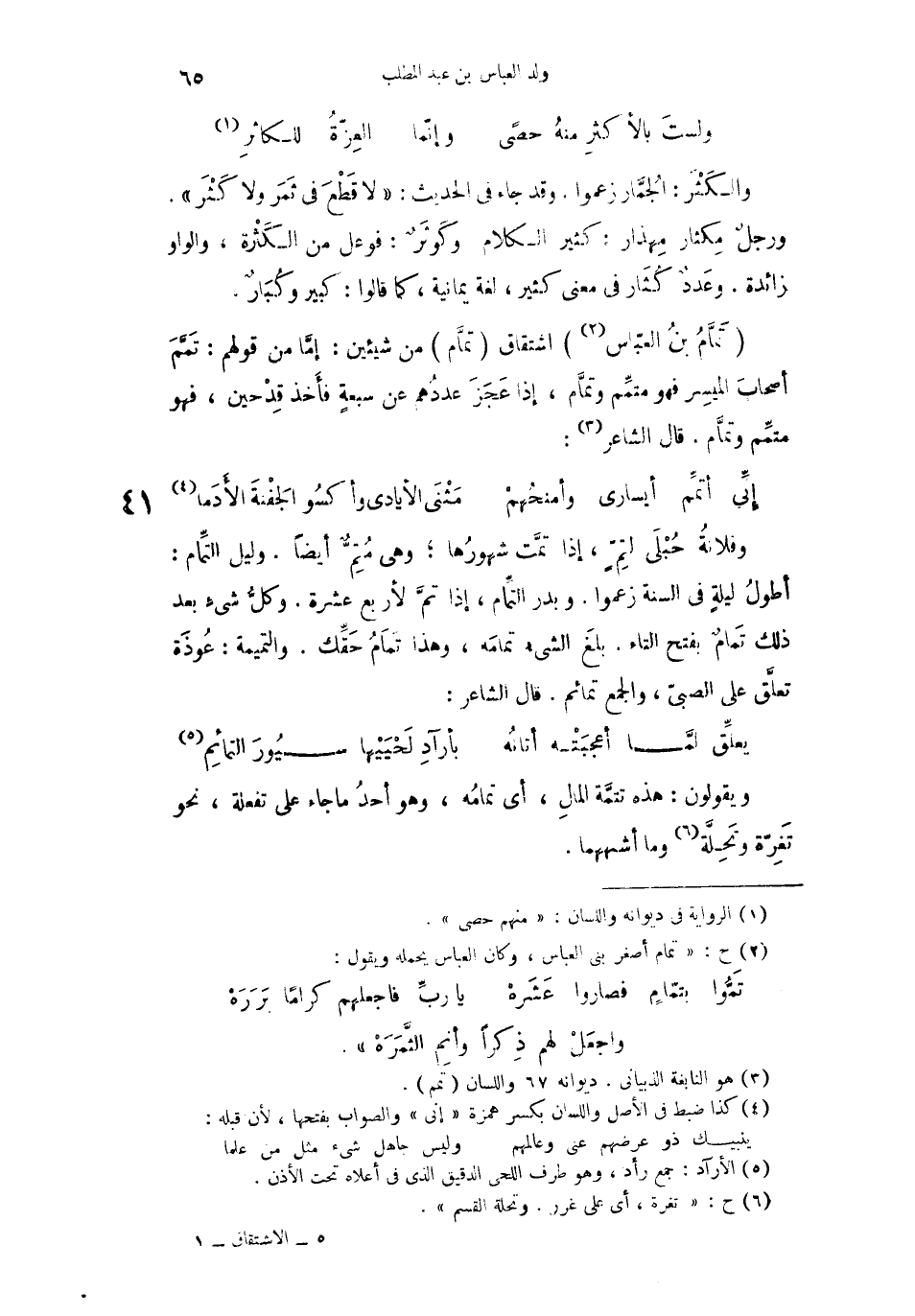 اشتقاق تمَّام من شيئين: إمَّا من قولهم: تَمَّمَ أصحابَ الميِسر فهو متمِّم وتمَّام، إذا عَجَزَ عددُهم عن سبعةٍ فأخذ قِدْحين، فهو متمِّم وتمَّام. قل الشاعر: