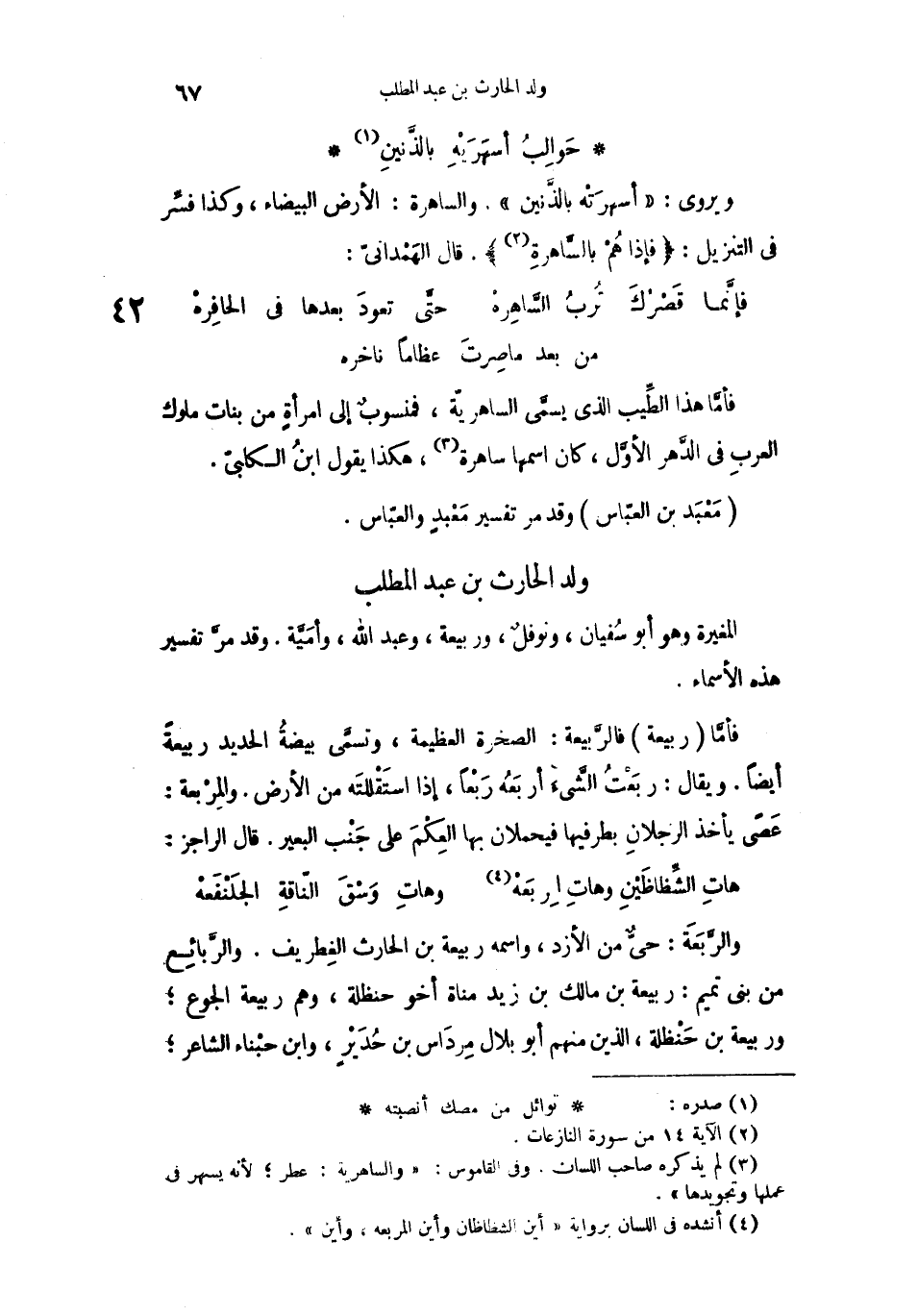 فأما هذا الطِّيب الذي يسمَّى الساهريّة، فمنسوبٌ إلى امرأةٍ من بنات ملوك العربِ في الدَّهر الأوَّل، كان اسمها ساهرة، هكذا يقول ابنُ الكلبيّ.