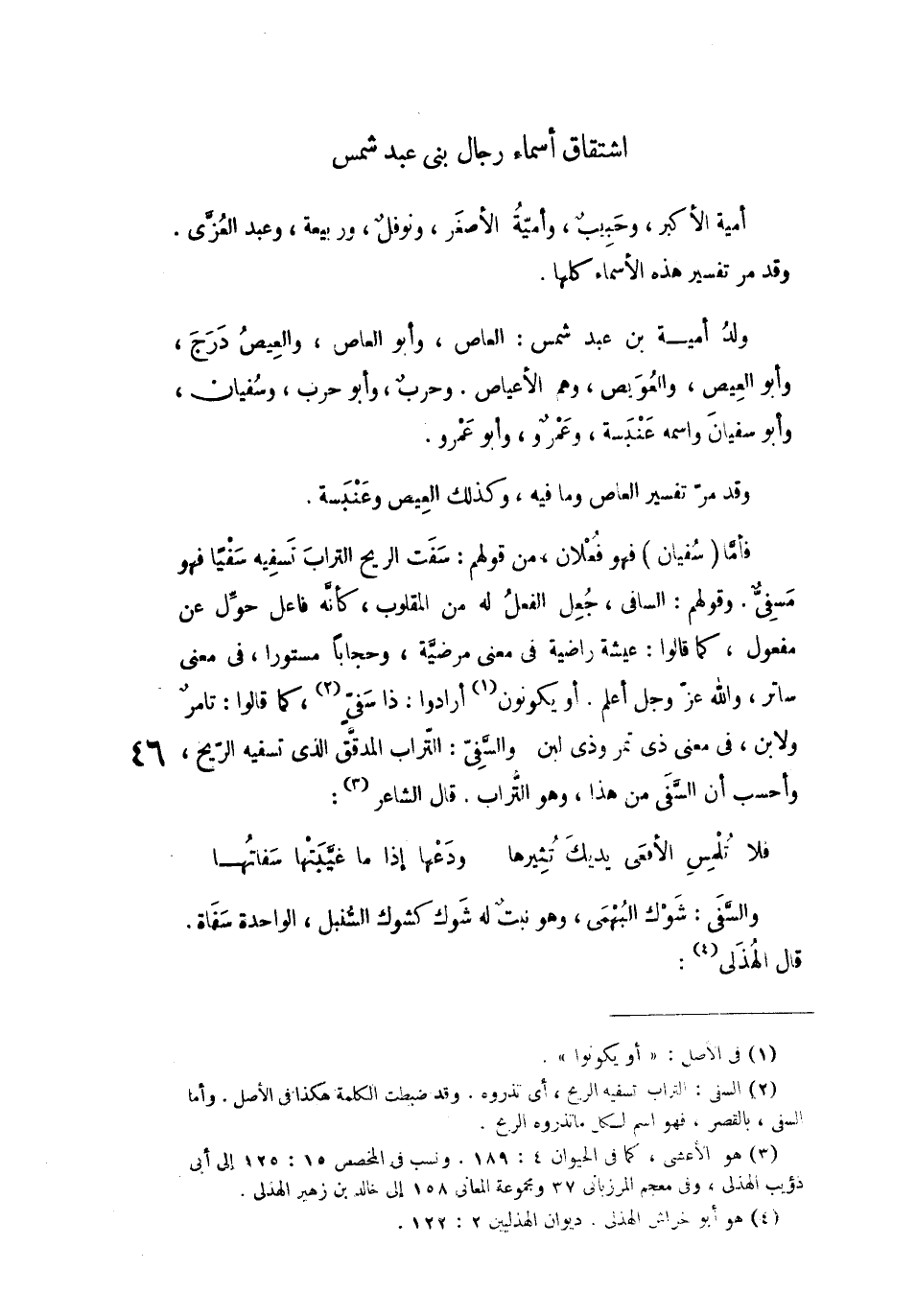 واشتقاق صيفي من قولهم: أًصاف الرجل فهو مُصِيفٌ، إذا وُلِد له بعد ما يكبَر، ولدُه صيفيُّون. وأَرْبَعَ إذا وُلِد له وهو شابٌّ. قال الراجز: