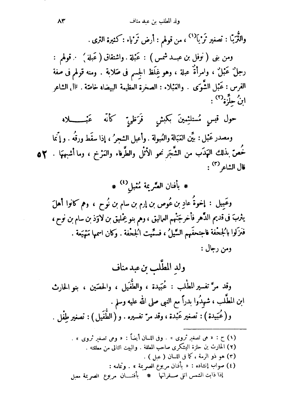 وقد مرَّ تفسير المطْلب: عُبَيدة، والطُّفَيل، والحصَين، بنو الحارث ابن المطَّلب، شهِدُوا بدراً مع النبي صلى الله عليه وسلم.