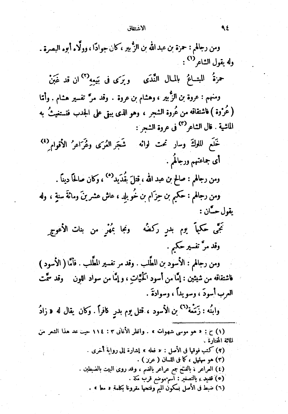 ومنهم: عروة بن الزُّبير، وهشام بن عروة. وقد مرَّ تفسير هشام. وأمّا عُرْوة فاشتقاقه من عُروة الشجر، وهو الذي يبقى على الجدب فتستغيثُ به الماشية. قال الشاعر في عروة الشجر: