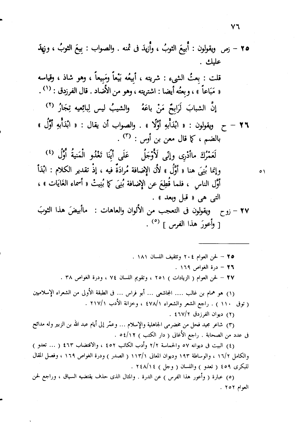 (و) العامة تقول: أعنانِي الشيءُ وصوابه عَناني، بغير ألف.